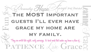 “The most important guests I’ll ever have grace my home are my family. They are worth late nights, early mornings & hard work that makes my home a place of love, joy, learning, peace, grace, patience, fun, hope…” -Mommy Kudos